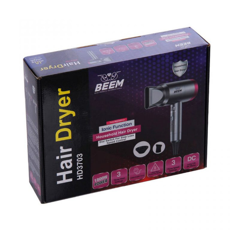 سشوار بیم مدل HD3703 یکی از همان دستگاههای مفید و مقرون به صرفه است که خرید آن بسیار را توصیه میکنیم. سشوار بیم مدل HD3703 مجهز به موتورDC با توان 1600-1800 وات است. یکی دیگر ازمشخصات بارز سشوار بیم مدل HD3703 خروجی هوای سرامیکی است. استفاده از سرامیک در سشوارها، به حفظ سلامت موها کمک میکند. چرا که این مواد از داغ شدن بیش از حد دستگاه جلوگیری میکند. در ادامه به معرفی دیگر امکانات سشوار بیم مدل HD3703 میپردازیم.