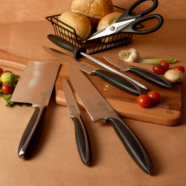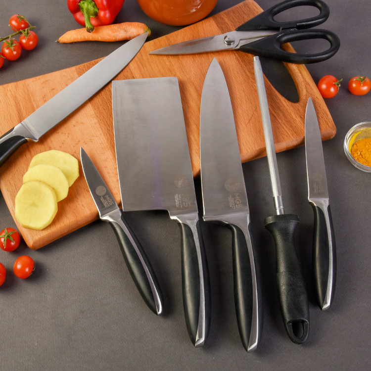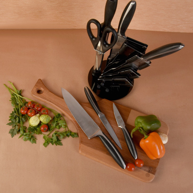 سرویس شامل : یک عدد قیچی آشپزخانه یک عدد چاقو تیز کن-یک عدد چاقوی سرآشپز به ارتفاع ۲۰ سانتی متر -یک عدد یک عدد چاقوی کوتاه به ارتفاع ۹ سانتی متر که بیشتر برای برای پوست کندن میوه ها و سبزیجات استفاده می شود -یک عدد چاقوی ابزار به ارتفاع ۱۳ سانتی متر که اغل برای برش دادن مواد استفاده میشود -یک عدد استند نگهداری چاقو به ارتفاع ۲۳ و قطر ۱۵/۵ -یک عدد چاقوی بلند به ارتفاع ۲۰ سانتی متر که میتوان برای برش گوشت و مرغ استفاده کرد -یک عدد چاقوی خرد کن به ارتفاع ۱۸ سانتی متر- ساخته شده از بهترین نوع استیل ضد زنگ ۱۸/۱۰.