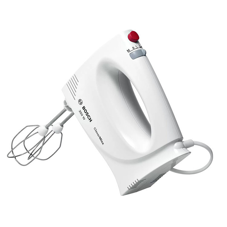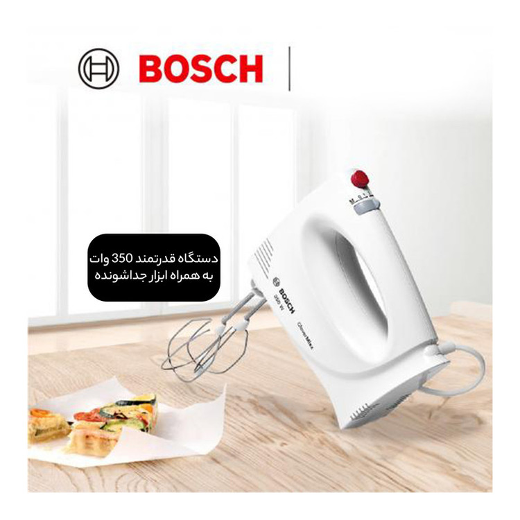 همزن دستی بوش BOSCH مدل MFQ3030 با توان 350 وات جزء همزن های ساده شرکت بوش بوده که برای مصارف خانگی مناسب میباشد . همزن MFQ3030 دارای طراحی بدنه ساده و از جنس پلاستیک مقاوم بوده که وزن کمی دارد و از خستگی حین کار جلوگیری میکند. این دستگاه مجهز به دو سری همزن و خمیر زن از جنس استیل ضد زنگ میباشد. از سری همزن برای هم زدن تخم مرغ ، خامه ، تهیه کیک ، یکدست نمودن سس و از سری خمیر زن برای ورز دادن خمیر استفاده میشود. پنل همزن بوش دارای یک کلید کشویی برای تنظیم سرعت در 4 مرحله و عملکرد توربو میباشد . یک کلید نیز برای جداسازی و تعویض راحت سری ها تعبیه شده است. کلیه قطعات دستگاه قابلیت شستشو در ماشین ظرفشویی را دارند.