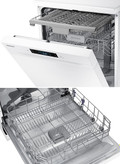 ماشین ظرفشویی 14 نفره DW60M5070FW سامسونگ با طراحی زیبا و خوش ساخت از ویژگیها و قابلیتهای کاربردی زیادی برخوردار است. این دستگاه با ظرفیت بالای خود می تواند در هر بار شستشو حجم زیادی از طروف کثیف را تمیز نماید. از مزیتهای این ماشین ظرفشویی برخورداری از موتور اینورتر دیجتال بوده که هنگام کار دستگاه صدای بسیار پایینی ایجاد می کند. این دستگاه بسیار بهینه عمل کرده و با مصرف پایین انرژی توانسه است در برچسب انرژی رتبه A++ را به خود اختصاص دهد. این دستگاه 7 برنامه شستشو دارد که از جمله آنها می توان به شستشوی بهداشتی، شستشوی خودکار و شستشوی سریع و قدرتمند اشاره کرد. شما می توانید از میان برنامه های متنوع متاسب با نیاز خود یکی را انتخاب نمایید تا شستشو با کارایی و راندمان بالا انجام شود. علاوه بر دو سبد ویژه با قابلیت تنظیم ارتفاع همچنین در بالای دستگاه یک سبد دیگر مخصوص قاشق و چنگال تعبیه شده است. طراحی این سبد با توجه به خاصیت انعطاف پذیری چنگال و قاشق صورت گرفته است تا شستشوی این موارد با کیفیت بالا انجام شود. شما می توانید ارتفاع سبدهای اول و دوم را با توجه به ابعاد ظروف تنظیم کنید. سبد اول با دنده های قابل تنظیم مخصوص لیوان و استکان طراحی شده است. سبد دوم هم مخصوص بشقاب و قابلمه و ظروف بزرگ استفاده می شود.