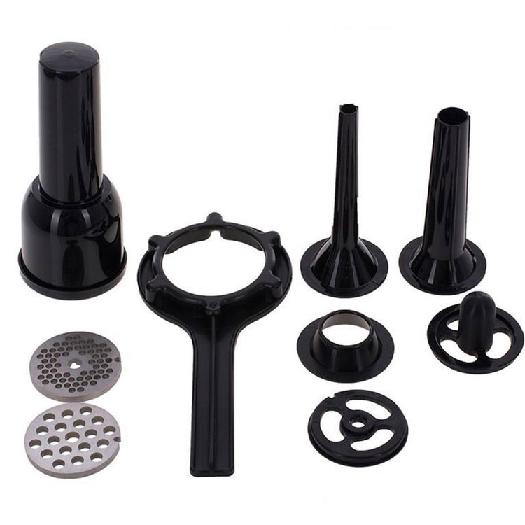 - 3 پنجره برای چرخ کردن گوشت - گلویی فلزی از جنس آلیاژ پرداخت شده به همراه گوشتکوب - دارای تیغه توری مشبک در سه اندازه ریز (3 میلیمتر)، متوسط (5.4 میلیمتر)، درشت (8 میلیمتر)