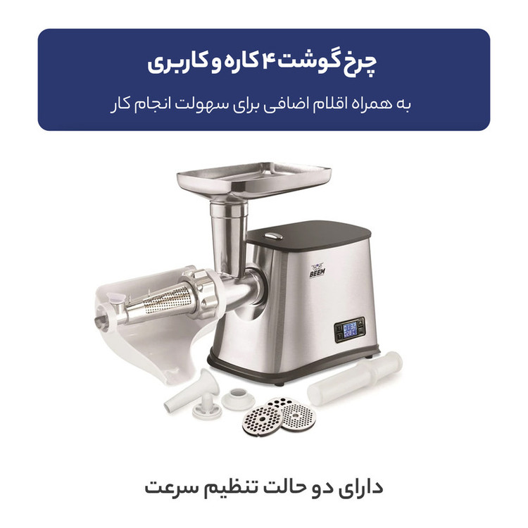 چرخ گوشت 4 کاره 2 سرعته دارای نمایشگر دیجیتال جنس بدنه استیل