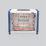 بخاری برقی برفاب مدل QH-3000 با توان حرارتی 3000 وات وسیلهای کارآمد با کاربری آسان و بازده حرارتی خوب است که در فصل سرد فضایی دلپذیر در خانه و محل کار ایجاد میکند. این بخاری مجهز به 6 المنت شیشهای است که با فناوری جابهجایی- تابشی و بدون ایجاد شعله حرارت ایجاد میکند. به همین دلیل حتی در مکانهای بسته نیز میتوانید بدون نگرانی از کاهش اکسیژن محیط، گرمای مطلوب داشته باشید. فن در این مدل بخاری برای انتشار گرما بهصورت همگن تعیبه شده است. این محصول مجهز به ترموستات است که توسط آن میتوان میزان حرارت دلخواه را تنظیم کرد. به کمک 4 کلید دیگر نیز میتوان 6 المنت و فن دستگاه را روشن و خاموش کرد. برای بازدهی بیشتر از صفحه استیل منعکس کننده نور و حرارت در پس زمینۀ المنتها استفاده شده است. این دستگاه مجهز به سیستم عملکرد ایمن است که در صورت واژگون شدن ناگهانی، بهطور خودکار خاموش و از بروز آتشسوزی جلوگیری میکند.